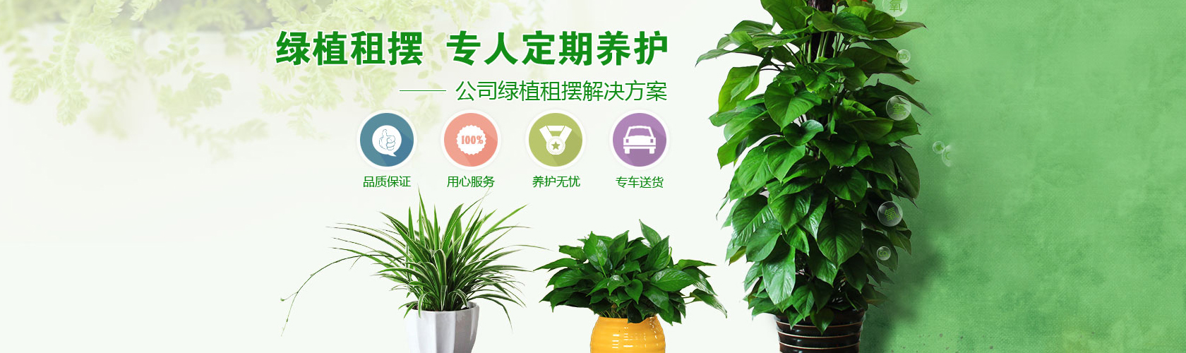 公司秉承“以誠信為本”的經營理念和“現代化管理,專業化服務”的服務標準,嚴把花卉質量關,在激烈的市場競爭中,憑借優越的質量與服務,嚴謹的工作態度,誠實守信的作風,在客戶中建立了良好的口碑。在深圳園林綠化及花卉租賃確立了一定的市場地位。我們竭力打造同行業楷模典范,根據客戶需求,不斷開拓創新,爭取做到哪里需要我們,我們就把綠色帶到哪里。送貨車隊,專職養護人員及專業的商務代表,時刻在乎您的需求,只需要一個電話,您將置身于綠色,健康的自然氛圍中,讓您足不出戶就可以享受我們為您提供的優質服務。